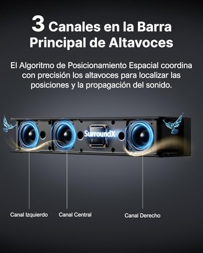 - Sistema SurroundX: Al combinar altavoces delanteros y traseros, proporciona una proyección de sonido precisa desde todos los ángulos.